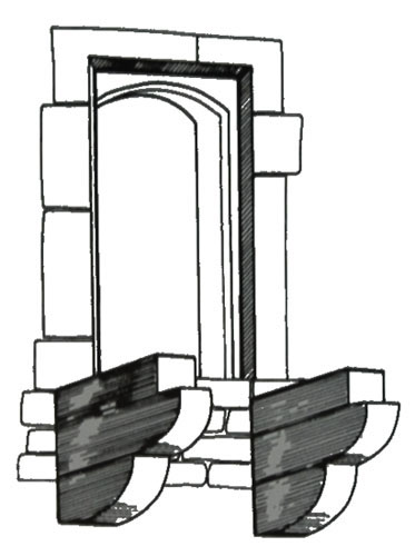 pravoúhlý ústupek vnější fasády budovy (věže, hradby), rámující portál, vjezd. Slouží jako lůžko, do něhož ve zdvižené poloze zapadne padací most.